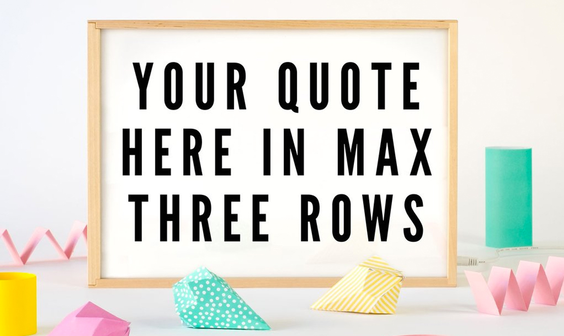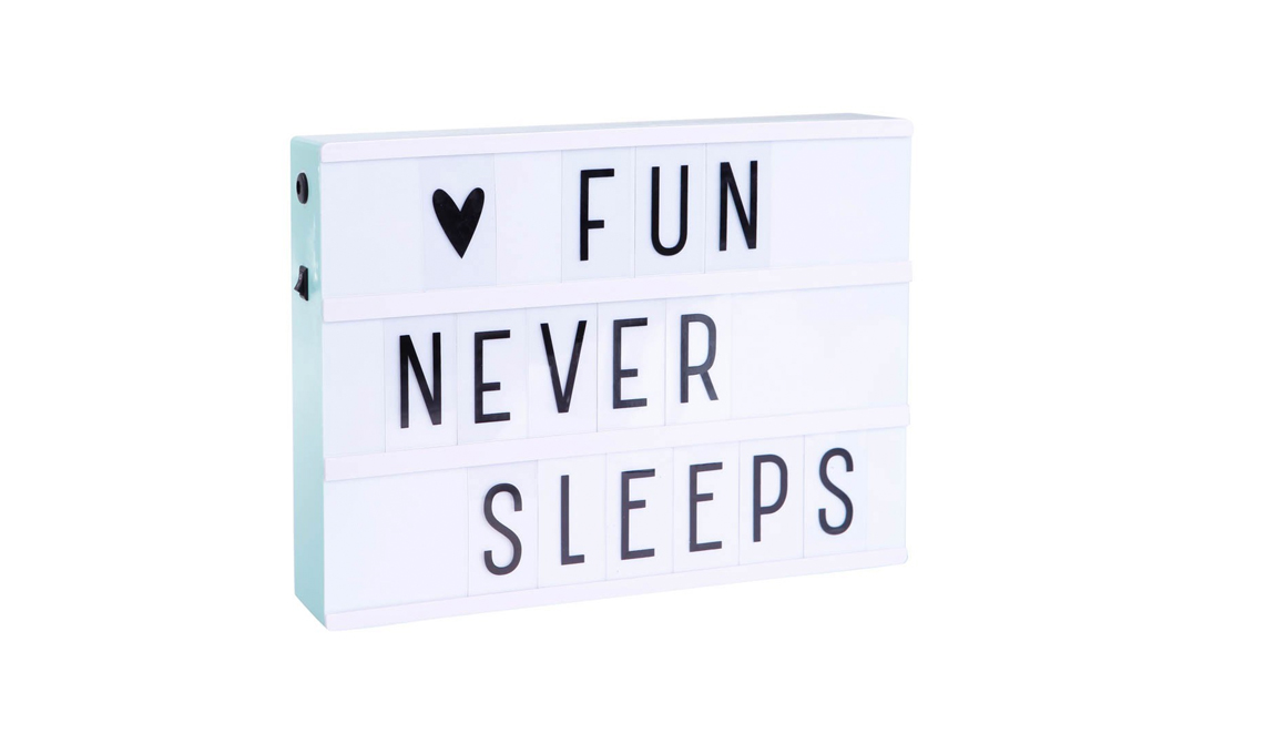 Senza dubbio la più famosa delle lightbox in commercio, dispone di una serie di lettere, numeri e simboli per comporre le frasi preferite. Disponibile in più colori e in tante dimensioni è davvero un accessorio imperdibile.
