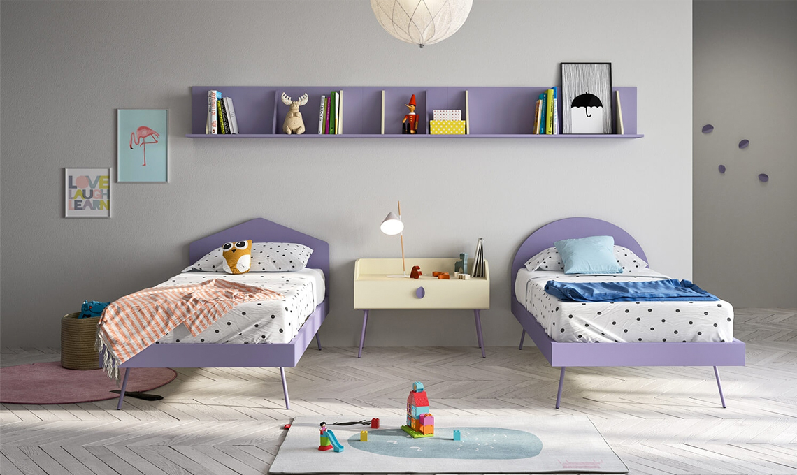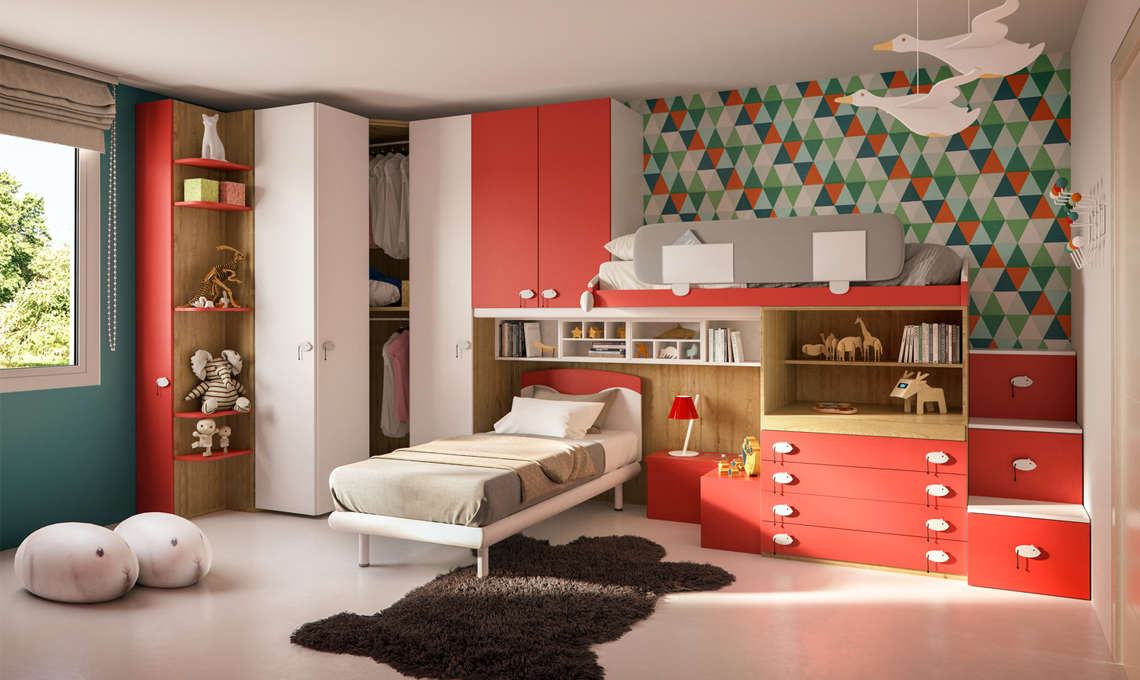 Il modello Smile 5 di Giessegi è una coloratissima cameretta sui toni del rosso. Non c'è niente di meglio della Peperomia caperata rosso che, riprende questo colore nelle sue foglie.