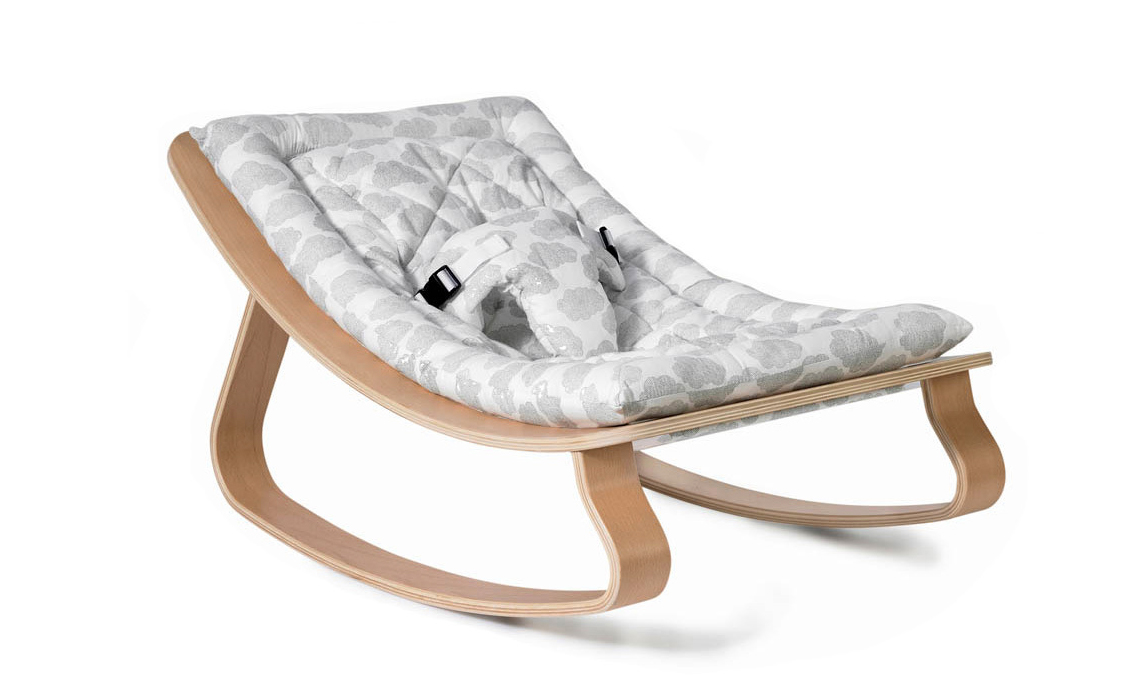 Il modello è un'interpretazione moderna della sedia a dondolo, con una struttura in legno che segue i movimenti del bambino nei momenti di riposo. Il sedile e il cinturino fissano il bambino nella posizione inclinata e nella posizione seduta in modo che possa oscillare a piacimento. La sdraietta è adatta ai bambini da 0 a 3 anni e ha un parasole opzionale.