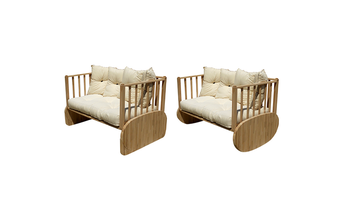 Per trasformare la culla in divanetto, basta togliere la sponda e inserire sotto i dondoli le due basi sagomate che servono per tenere ferma la struttura.