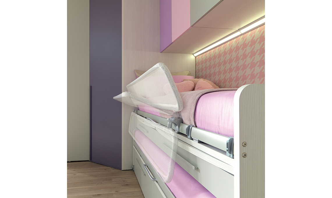I letti a castello devono avere una sponda anticaduta alta almeno cm 26 dalla base fissa, oppure bloccabile con apposito meccanismo ‘a chiave’ (in modo che un adulto la possa sbloccare per rifare il letto).