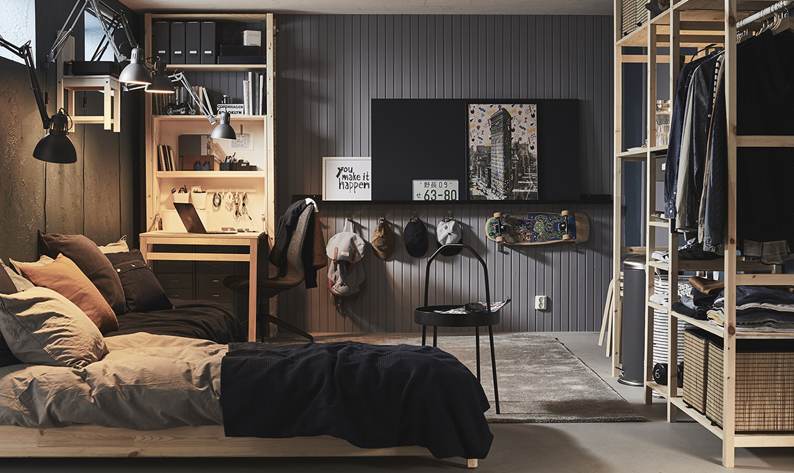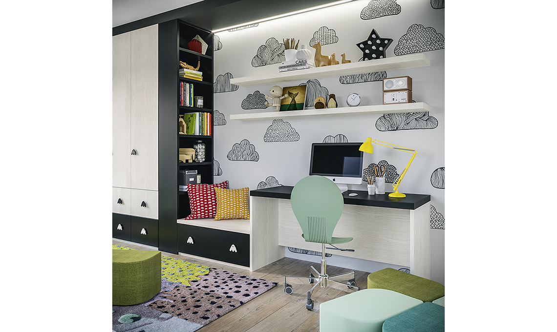 Non serve più solo a fare i compiti ma diventa il centro nevralgico della stanza, soprattutto se si fa didattica a distanza. Deve essere profonda 60-70 cm per ospitare lo schermo del computer più la tastiera e i quaderni per gli appunti. Completala con mensole e ganci tenere in ordine i libri, ma anche  accessori per eventuali hobby cui dedicarsi nel tempo libero.