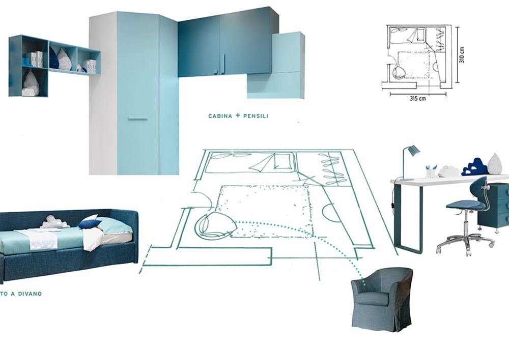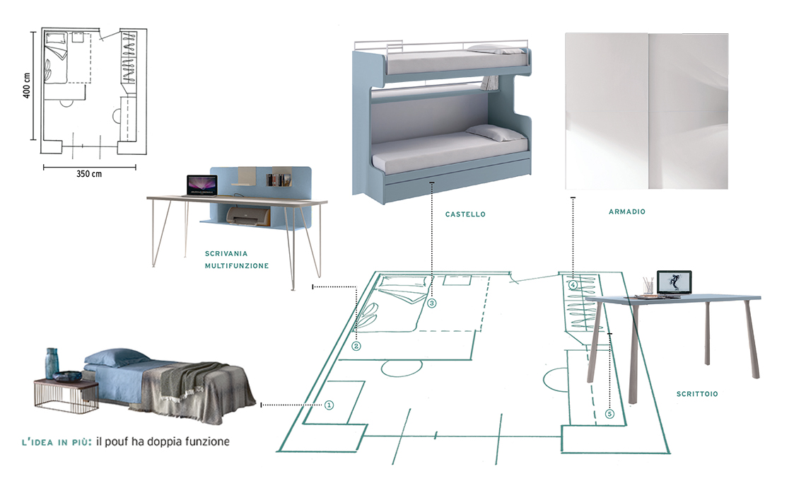 Letto Castello di Gel nel colore blu glicine dotato di letto inferiore e letto superiore, integrabile con più elementi componibili [Zalf, cm 205,06x89x166h €1.159]