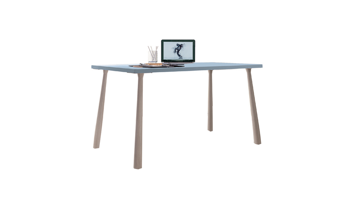 Scrittoio Web con piano blu glicine dalla superficie antigraffio [Zalf, cm 135x80x72,8h € 621].