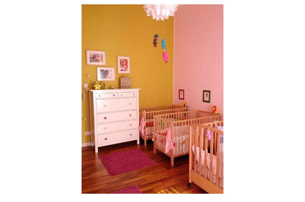 «Cara Gabriella, ti suggerisco una parete attrezzata con letti agganciati a una boiserie con cremagliera orizzontale fissata al muro: in questo modo puoi far ‘scorrere’ i letti durante il giorno e liberare spazio per le attività delle piccole.