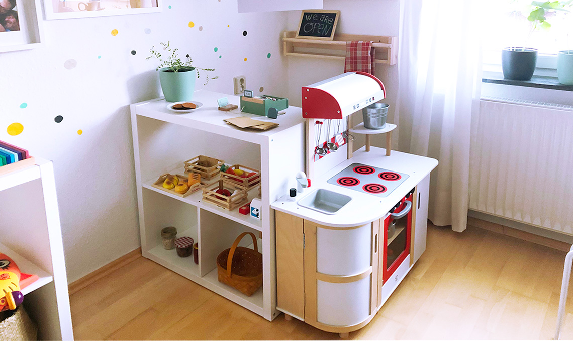 E non solo nella cameretta ma in generale in tutta la casa, e spesso basta davvero poco. Per una zona ingresso a misura di bambino piccolo basta uno sgabello basso e qualche gancio per appendere le giacche. Per lavarsi da soli le mani o cucinare insieme basta uno sgabello stabile con due scalini. In cucina possiamo liberare un ripiano basso in cui tenere qualche bicchiere, stoviglia, piccola caraffa e tovagliolo.