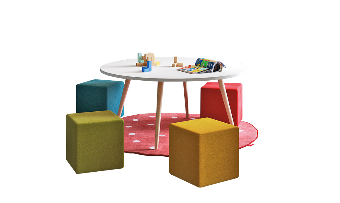 Ergonomia: a 4 anni il tavolo di diametro cm 80-100, alto cm 50-55 ha bisogno di una seduta da cm 35h. Dagli 8/9 anni si può passare al tavolo da cm 110-120, alto cm 65-75 e con sedute alte cm 41-51.