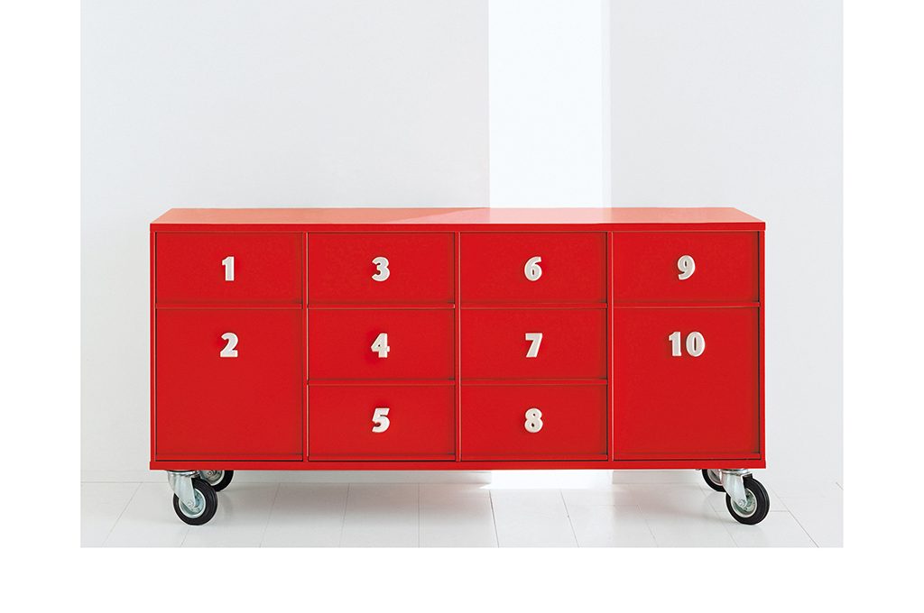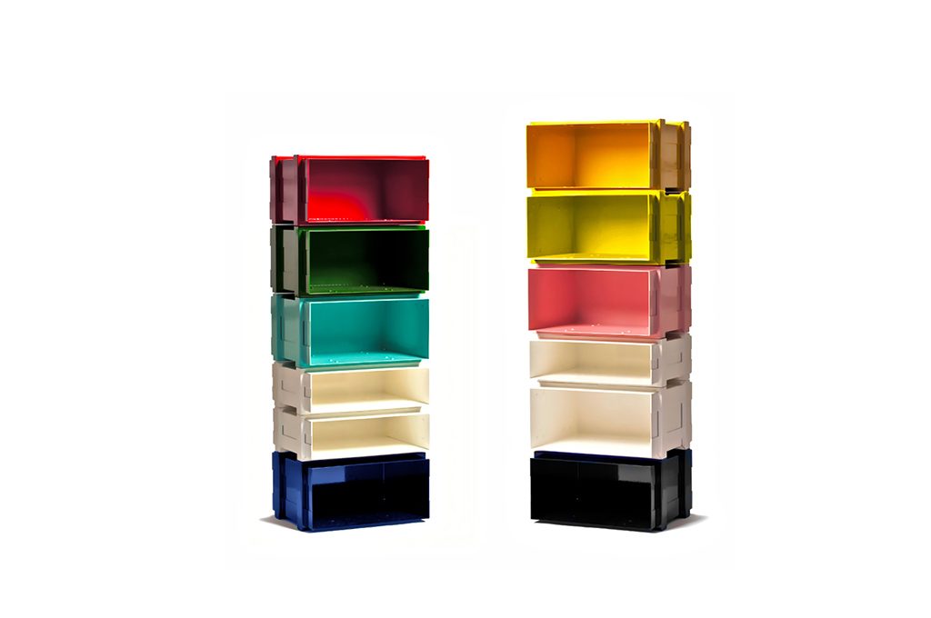 Area gioco fuori dalla camera: contenitori impilabili con rotelle per portare in giro i giocattoli e riportarli indietro la sera