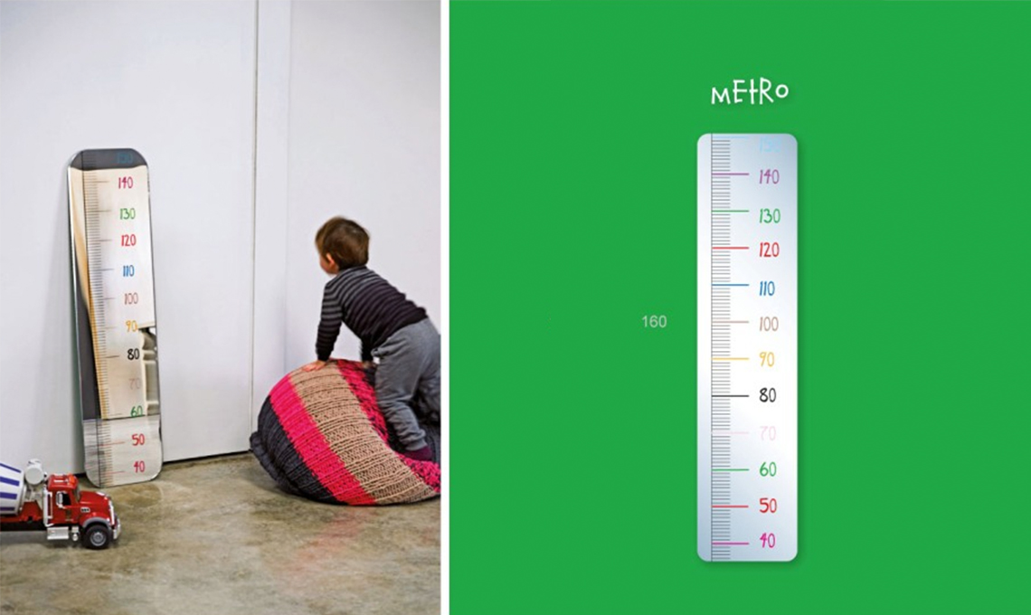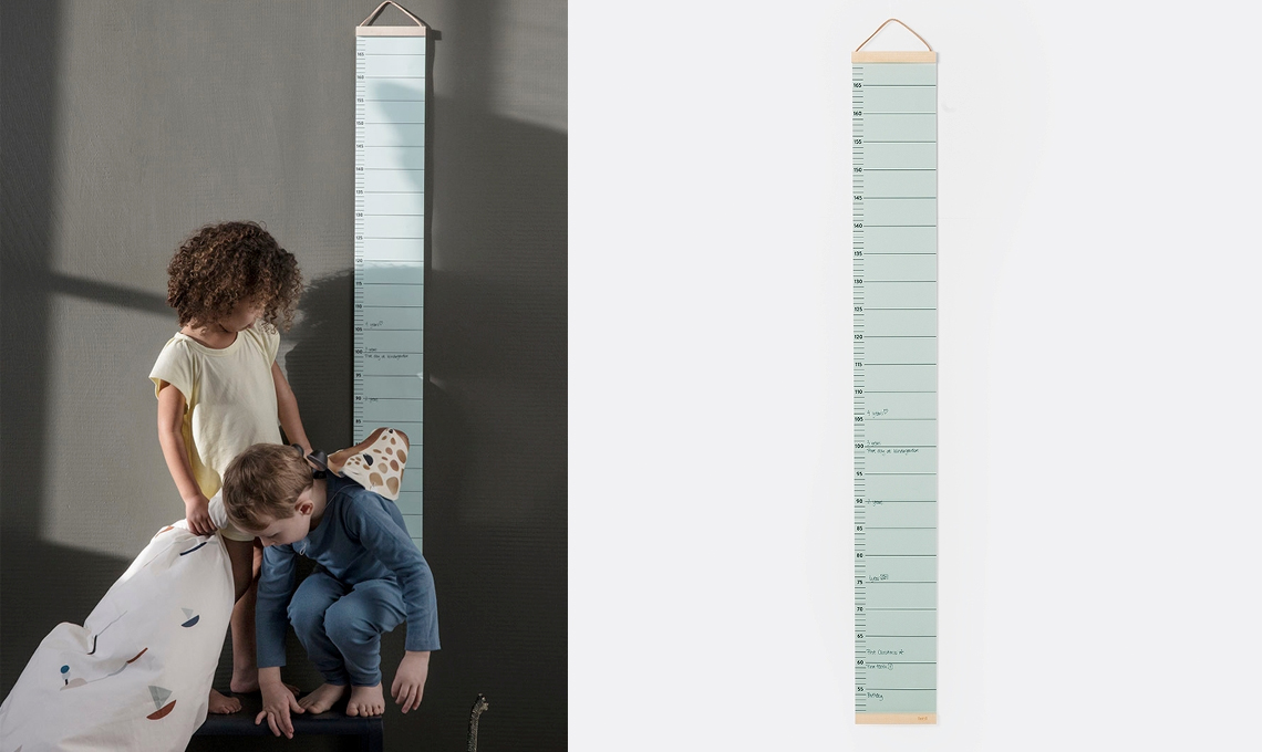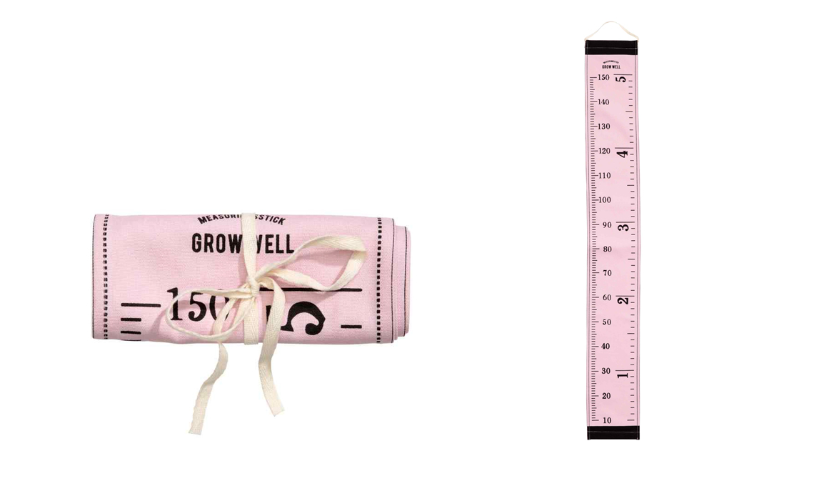 Si tratta di un metro in legno da appendere al muro della cameretta mediante un laccio in cuoio. Disponibile in tre colori, è realizzato in un materiale che permette di usarlo anche come lavagnetta. È infatti possibile scriverci sopra tutti i momenti importanti della vita del bambino.