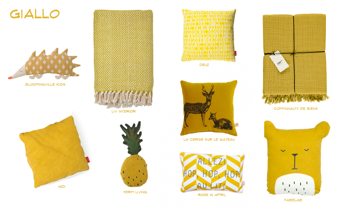 Se amate il giallo? Possiamo scegliere tra la coperta melange in cotone di Liv Interior (€50,00) o quella morbida e in tinta unita, in lino, di Communauté de biens (€80.00). Per quanto riguarda i cuscini c’è davvero da sbizzarrirsi.