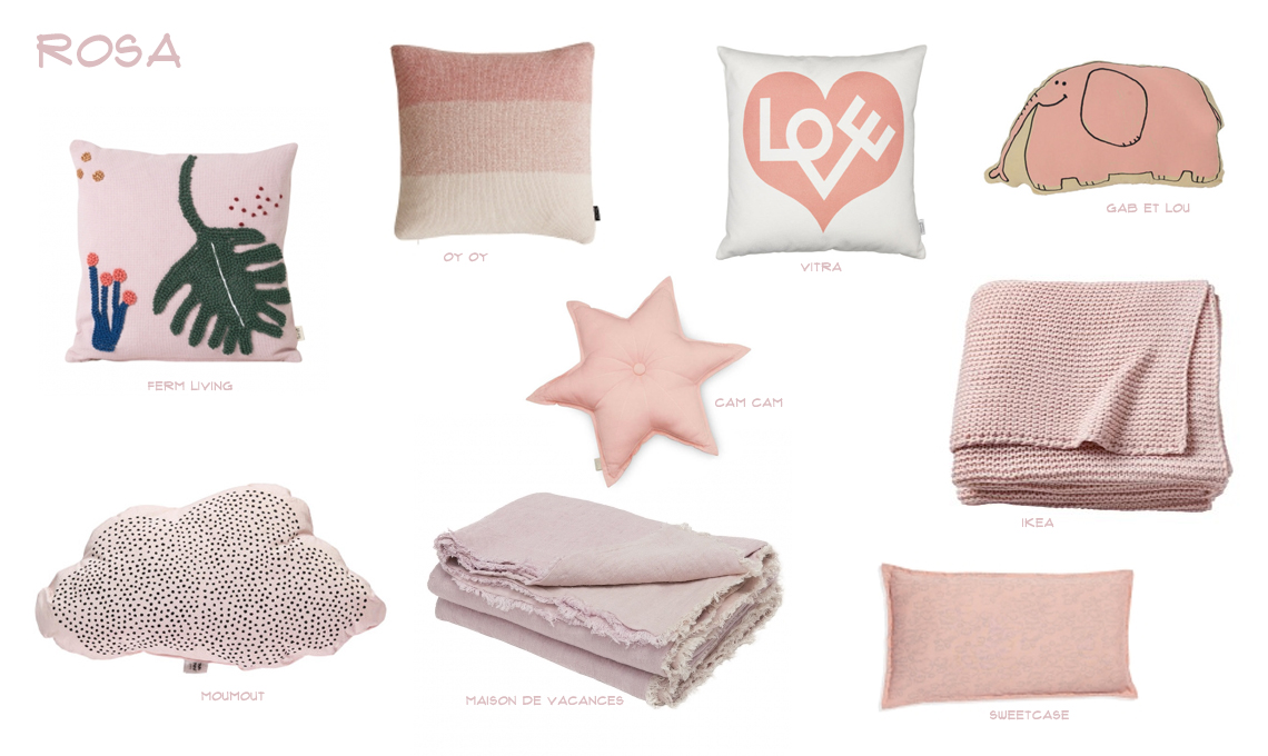 Colore pacato e rilassante, fa subito venire in mente la cipria e lo zucchero filato. Morbidissime, la coperta rosa pallido in lino di Maison de Vacances (€202,00) e la coperta Ingabritta di Ikea (€24,99) che ricorda il tradizionale lavoro a maglia. Per i cuscini, largo alle tinte unita come la stella rosa di Cam cam (€27,00), il cuscino di Sweetcare (€36,00) e il cuscino in gradazione di OY OY (€67,50).