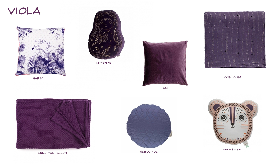 Nell’arcobaleno non può mancare il viola, ideale per la camera della teenager ma anche per quella dei più piccoli. Per i bambini potete scegliere la morbida coperta di Linge Particulier (€109,00), il cuscino Orso Billy di Ferm Living (€36,00) e il modello tondo di Nobodinoz (€38,00). Per le teenagers è l’ideale la coperta trapuntata con righe argento di Louis Louise (€84,00), il cuscino Moogli viola di Hârto (€48,00), la matrioska di Numero 74 (€39,00) e il cuscino di velluto tinta unita di H&M Home (€7,99).