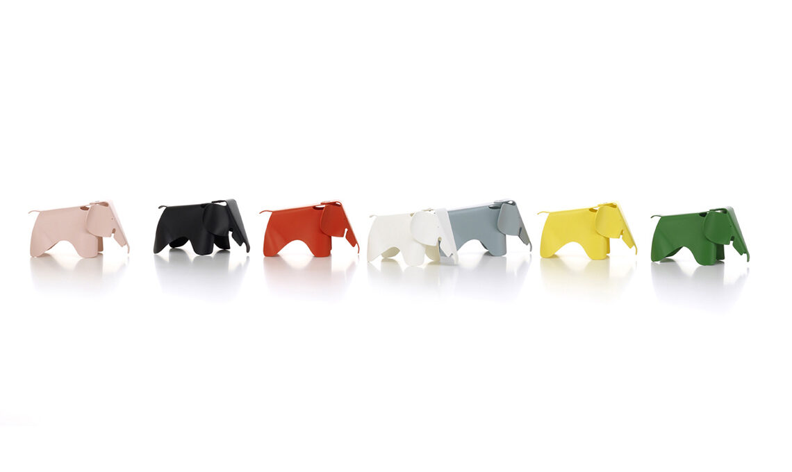 Nato in legno multistrato con il segno dei più famosi coniugi del design, capaci di rendere con poche linee, dei piani curvati e un giunto la ‘matericità’ dell’animale, l’elefantino è prodotto (entrato in produzione, è poi stato proposto in tre diverse misure) in materiale plastico, e in tanti colori.