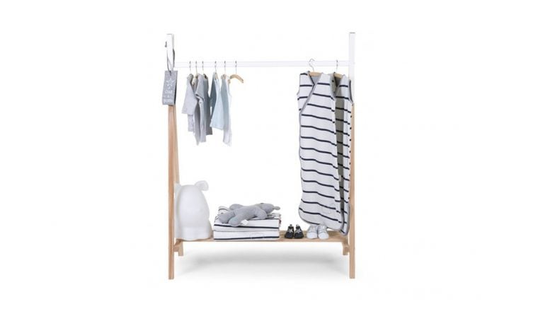 La struttura del letto, ospita un modulo a giorno con 3 ripiani più 3 elementi estraibili attrezzati con scrivania e tubi appendiabiti.