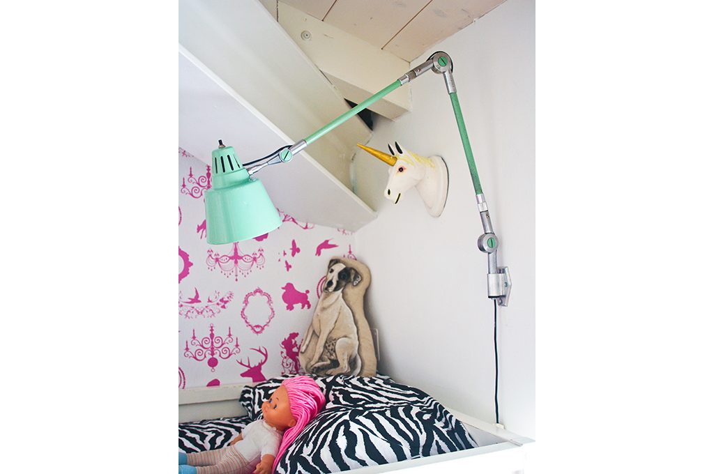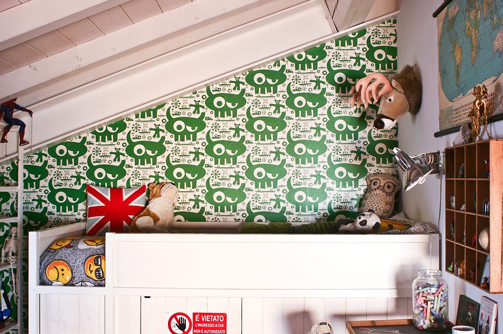La scelta della carta da parati è durata mesi: le richieste iniziali erano pareti glitterate da una parte e tappezzerie di Star Wars dall’altra!» ci racconta ridendo Mia. Alla fine si è optato per un mix di fantasiediverse ma armoniose, che sottolinea gli spazi per lei e per lui creando due stanze nella stanza!