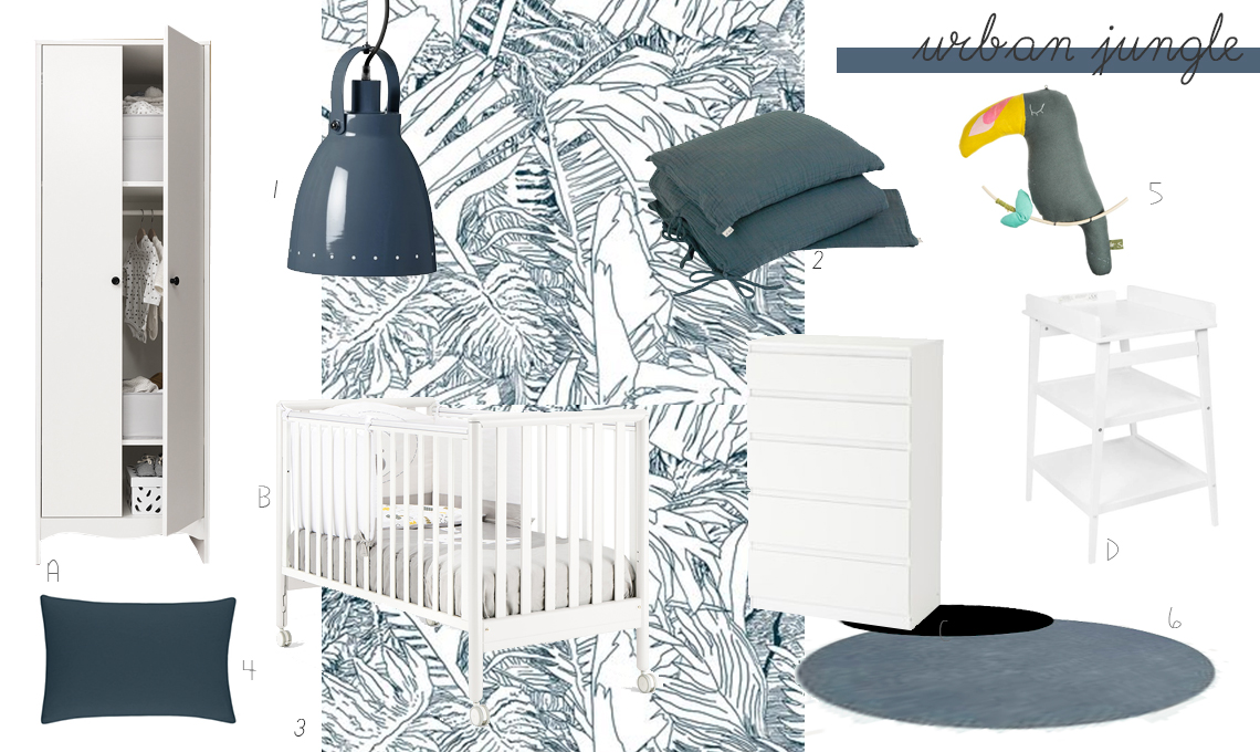 Un piccolo ma capiente armadio come il modello [A] Sogul di Ikea (99€), una cassettiera per riporre la biancheria come [C] Kullen di Ikea (54,99€), un fasciatoio semplice con ripiani per i prodotti per il cambio come [D] Hip di Quax (179€) e una culla o lettino come [B] Bravo bianco di Pali (150€). La culla non è indispensabile, anche il lettino andrà bene a patto che venga dotato di un riduttore per assicurare al bebé il giusto grado di protezione e sicurezza. Per finire, se la dimensione della stanza lo consente, potete aggiungere una poltrona per il momento dell'allattamento.