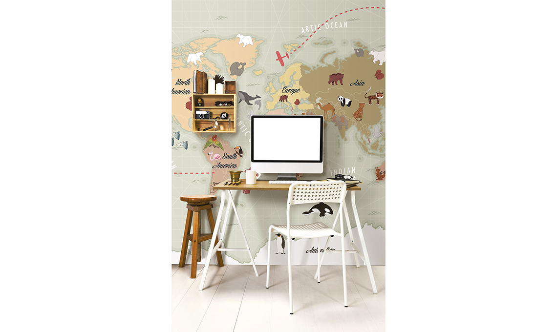 La camera di una teenager è un mondo!... in questo caso letteralmente. Il relooking, infatti, è partito da una wallpaper con il planisfero.
