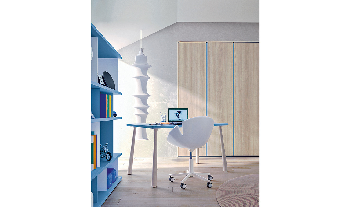 Leggero ed essenziale lo scrittoio Web con la sedia Bloom [Zalf, cm 135x80x70h €620 il tavolo].