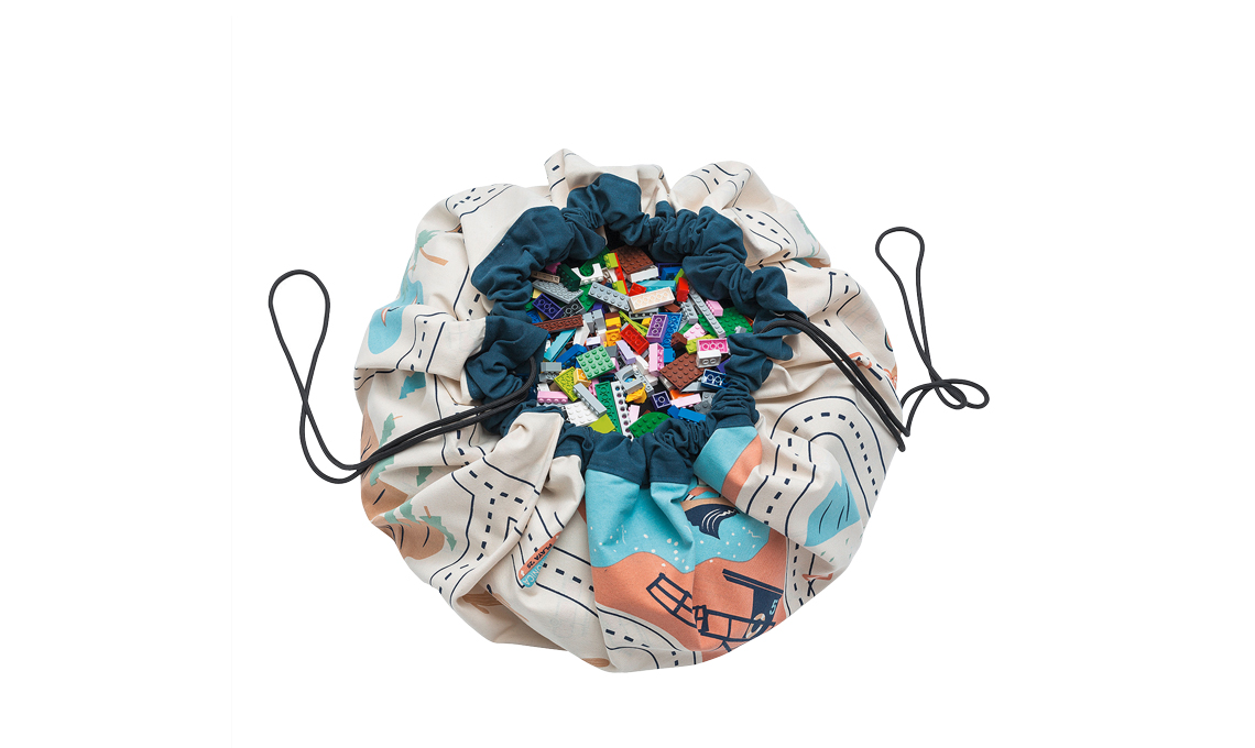 Sacca in cotone L.A Roadmap, per contenere giocattoli e pupazzi. Allentando il cordoncino si trasforma in tappeto-gioco [Play And Go]