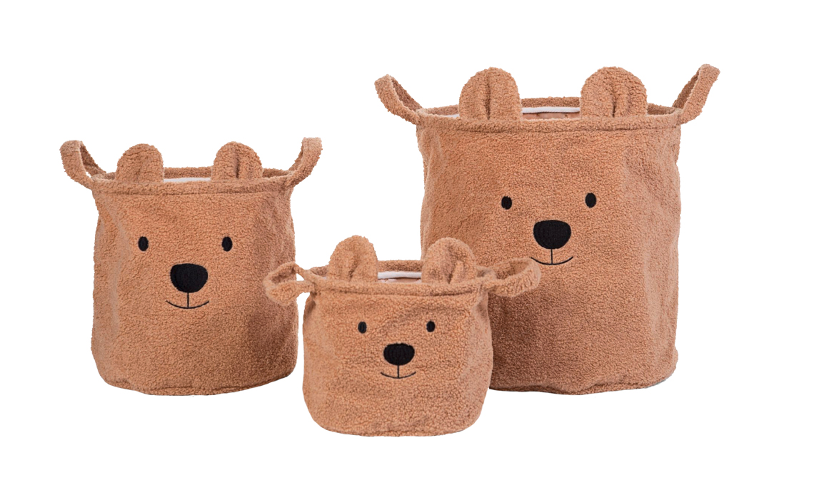 Morbide ceste portatutto Teddy: raffigurano una famiglia di orsetti dediti all’ordine. Qui nel colore Brown [Childhome]