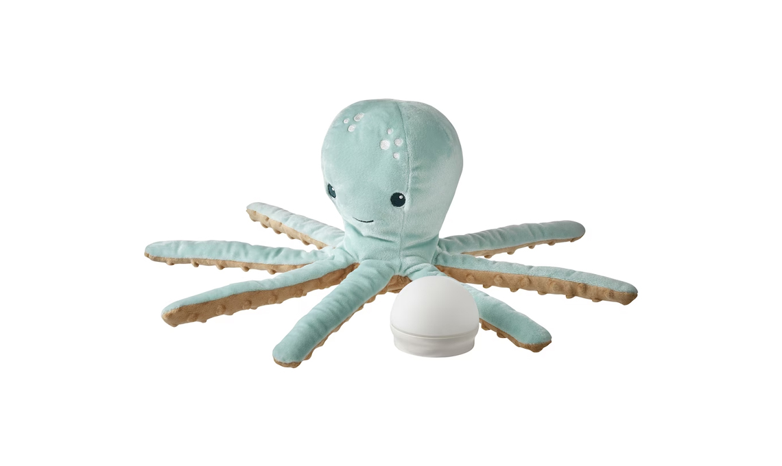 Peluche Polipo Turchese con luce notturna a Led. È parte della collezione salva-ambiente Blåvingad, nata per educare i bimbi al rispetto del mare e all’importanza di mantenerlo pulito [Ikea]
