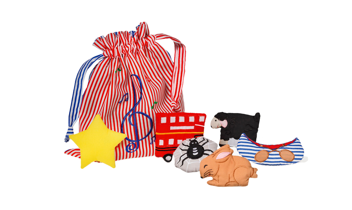 Sacchetto con sei giocattoli sonori in stoffa [Oskar&Ellen]