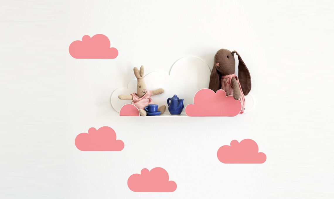 Per rallegrare la stanza si possono poi scegliere appendiabiti e mensole colorate, magari a forma di nuvoletta, mentre quelle a zig zag danno movimento alla parete e possono essere utilizzate per esporre i giocattoli più belli, magari in legno.