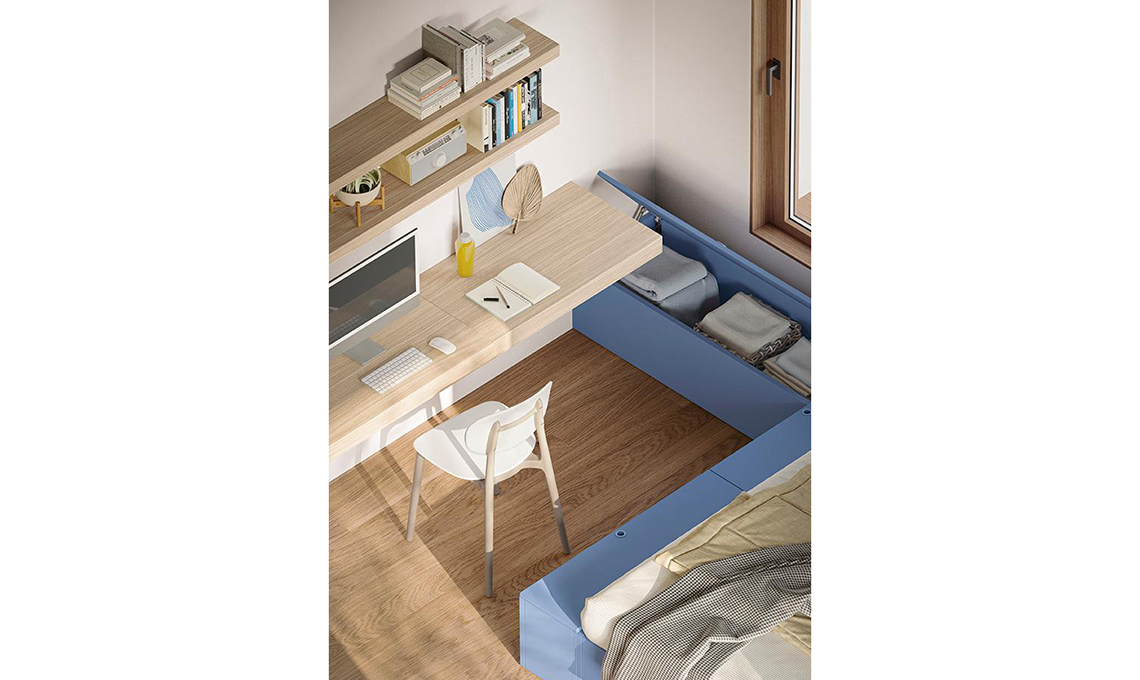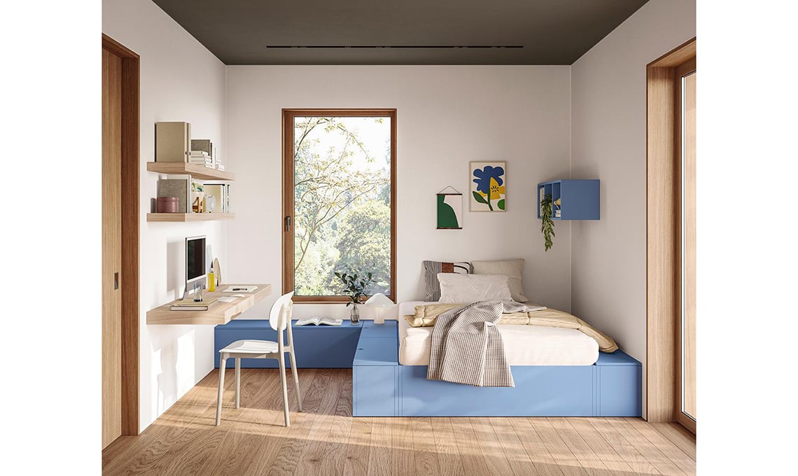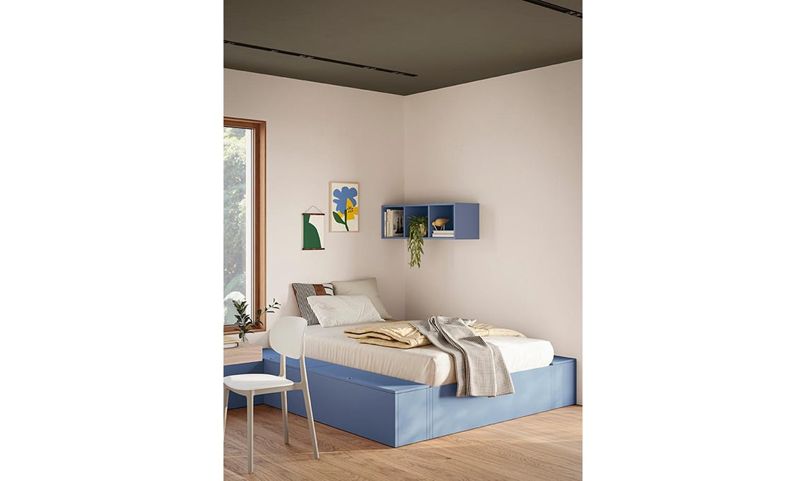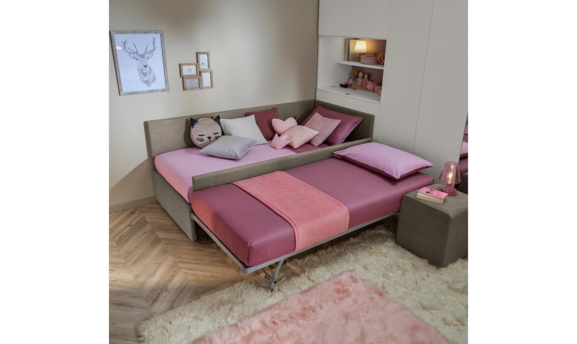 Il divano letto è un elemento da non sottovalutare, quando arredi la cameretta, perché di giorno è la perfetta zona per relax-gioco e di notte, con la rete estraibile, permette di ospitare un/a amico/a.