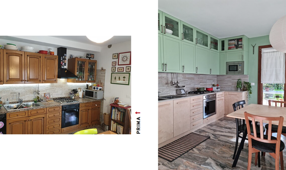 «Nella mia nuova casa ho riadattato la cucina e alcuni mobili lasciati dai precedenti proprietari. Grazie a CasaFacile ho provato a intrecciare ‘green’ e ‘re-use’ e per la cucina mi sono ispirato a una casa vittoriana vista proprio su CF. Ho mantenuto la struttura dei mobili ma ho ridisegnato le ante: quelle inferiori in betulla color naturale, quelle superiori laccate. L’aggiunta dell’angolo, profondo 45 cm, mi ha fatto recuperare spazio.
