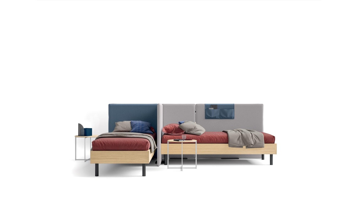 cm) e Medium (da cm 112) in tessuto Funny S64 e pannelli Small, Medium e Large (da cm 138) in tessuto Smack S14, giroletti cm 19h in rovere natural con gambe Ruler brunito più tavolini Tac con struttura bianco e piano rovere [Zalf € 4.340 la composizione].