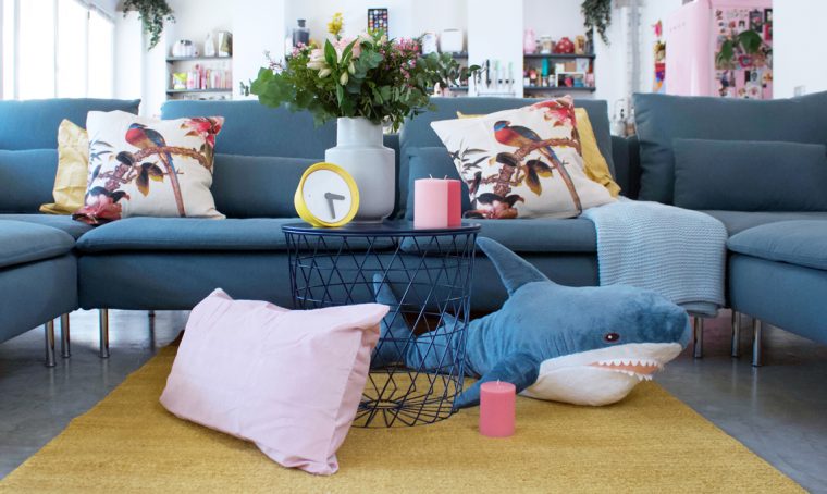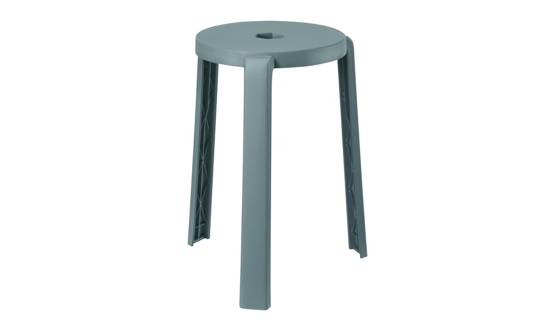 Sgabello Ibbarbo impilabile in plastica propilenica qui in azzurro [Ikea, ø cm 37x45h € 9,95].