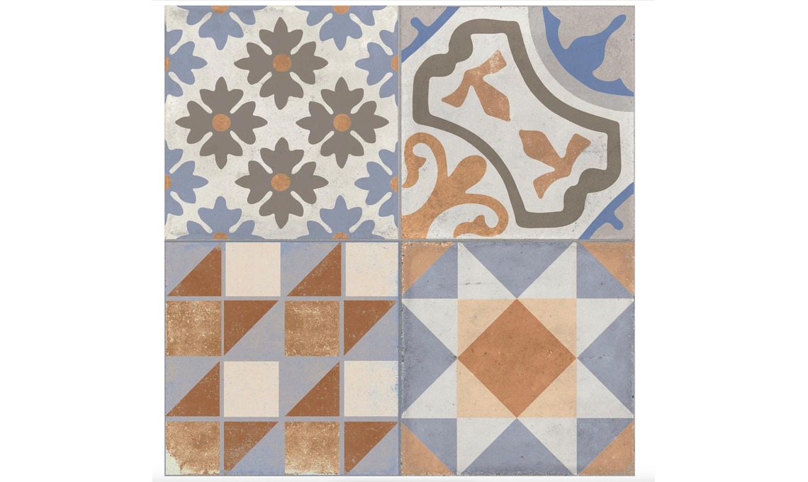 Piastrella Heritage MixColour, in grès effetto cementine per pavimenti e rivestimenti [Gresart, cm 33x33 € 16,25/mq].