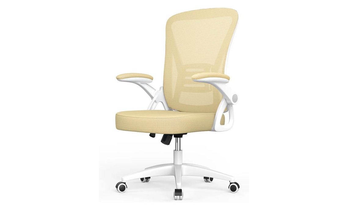 Sedia da scrivania Lally con base in acciaio con ruote, seduta ad altezza regolabile e rivestimento bouclé [La Redoute, ø cm 59x83,5/95h € 98,99].