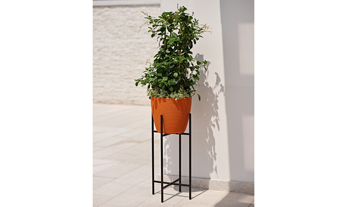 • Sul supporto Iron Stand, il vaso in plastica Duna [Tera]