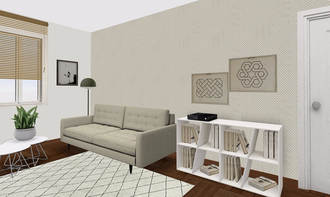 La soluzione più semplice è appoggiare a terra uno scaffale senza schienale. Da altezza uomo non si vedrà più nulla e i libri aiuteranno a ‘coprire’ il retro. In più, guadagni superficie di appoggio e hai un utile mobile di contenimento.