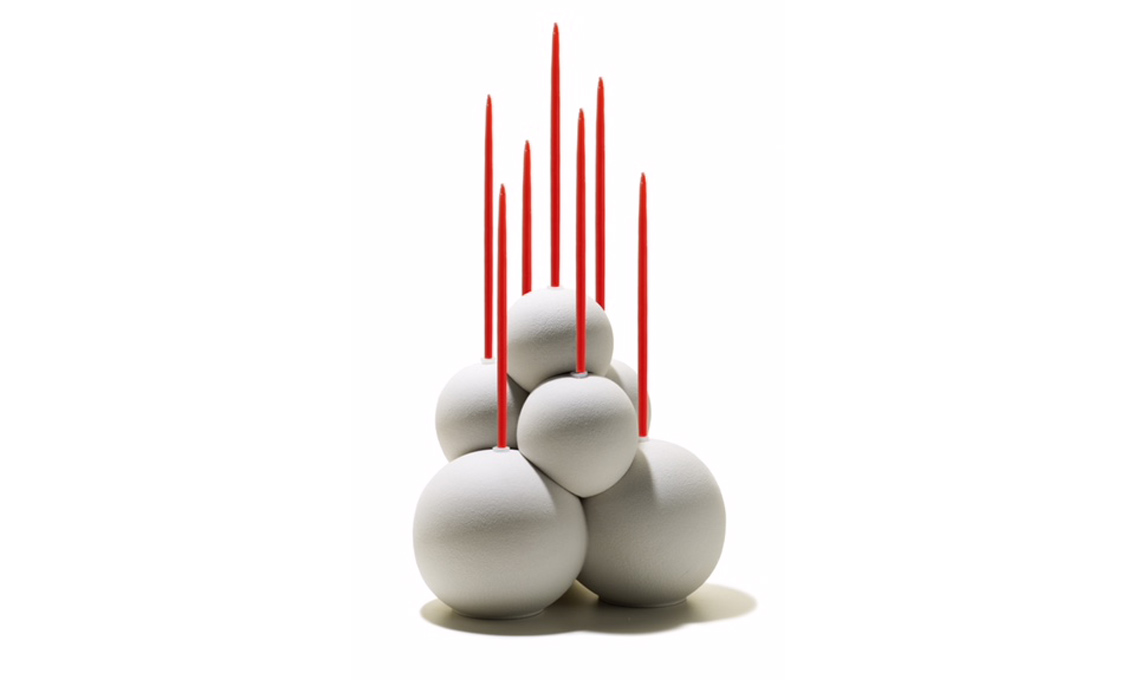 S'ispira alla natura il candelabro Together, in acciaio nichelato [Driade, cm 28x28x20h €256]