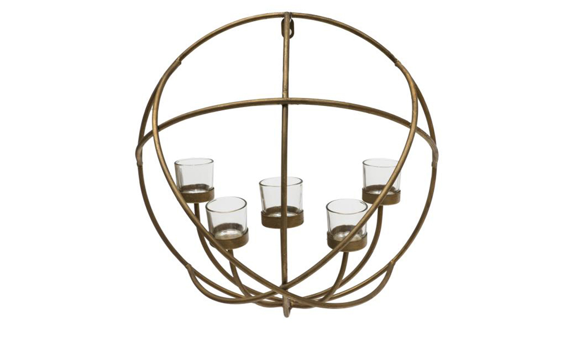 Planetario è addirittura da parete e crea un effetto speciale; è in metallo color bronzo, con 5 portacandele in vetro [Novità Home, cm 41x20x41h €42,80].