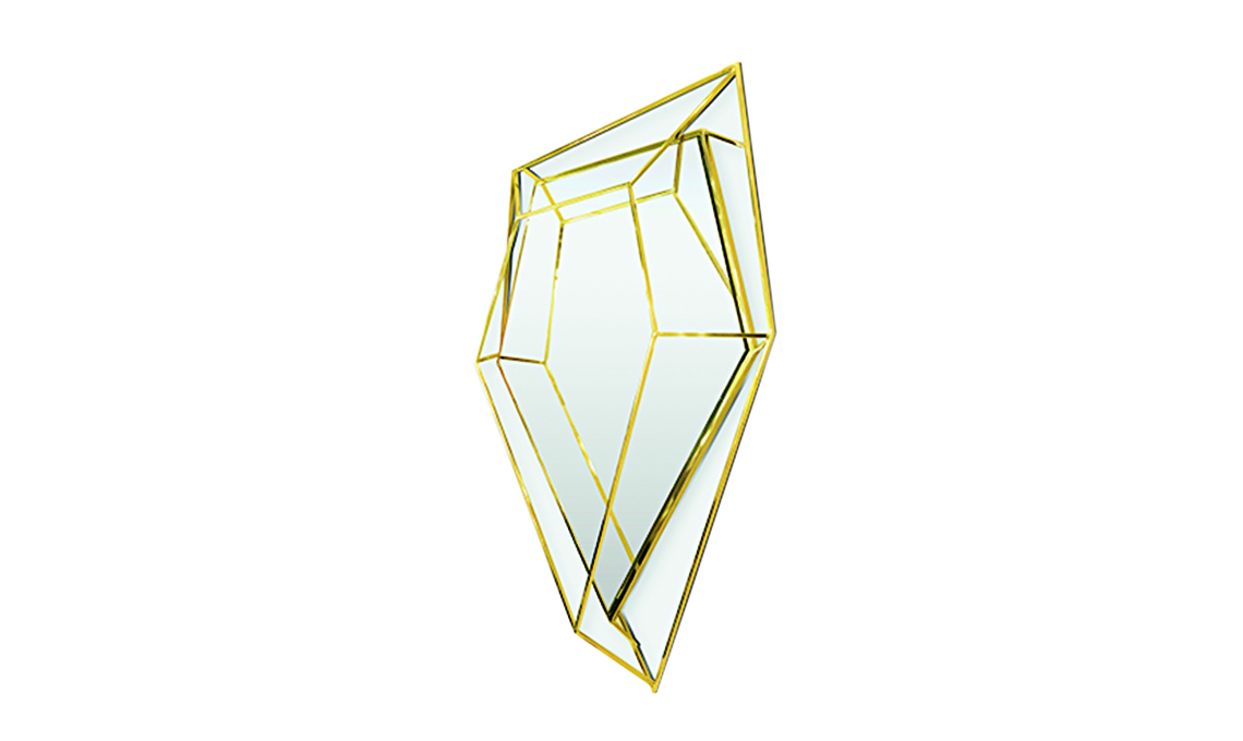 Le superfici di specchio sono inclinate con effetto tridimensionale che ricorda un diamante.