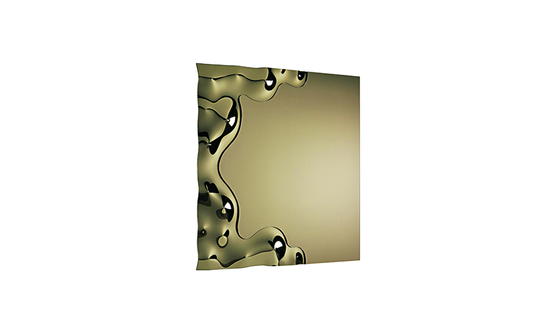 Creativo, è realizzato in vetro fuso specchiante e bronzato con effetto liquido a rilievo.