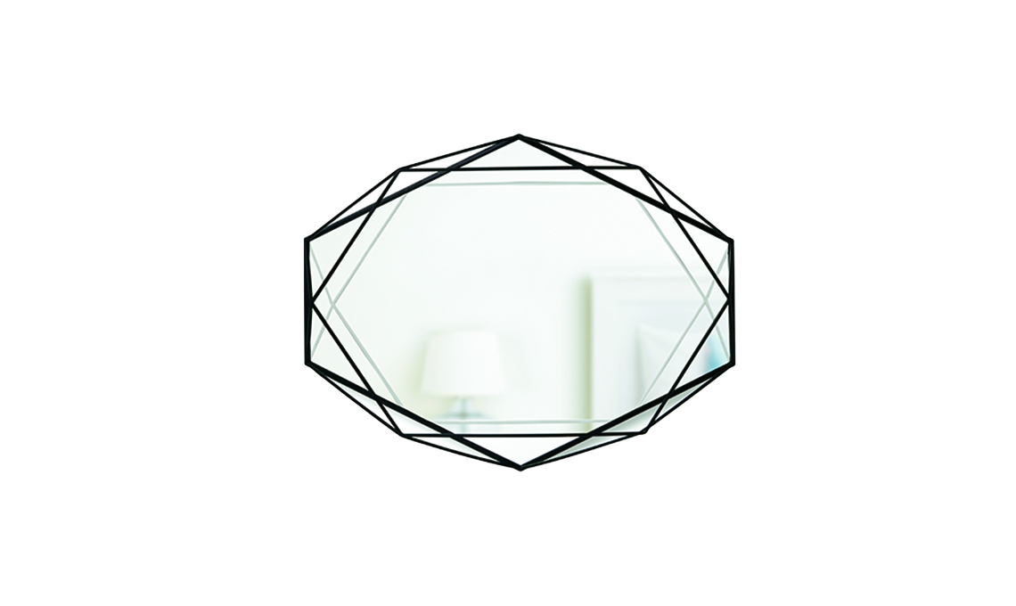 In metallo, Prisma Mirror crea profondità con profili geometrici sfalsati.