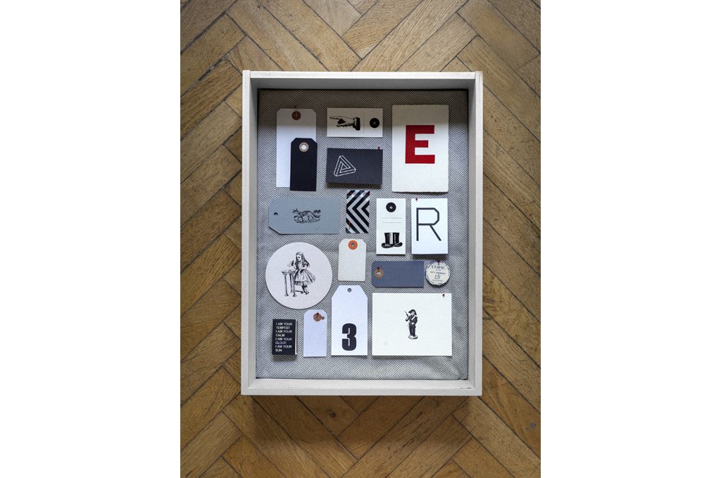 Puoi realizzare delle composizioni personalizzate al 100% con tag (etichette) oltre a biglietti dai decori vintage accostati a lettere e numeri. Per il fondo scegli un tessuto spigato come Villa Flori [L’Interno, cm 138h €83/m]. Tag con mano Historisk [Ikea, cm 8x4 €0,99 il set da 10]; washi tape Chevron zig-zag in bianco&nero [Scrap It Easy, cm 100x3,5h €4], tag con il numero 3 [House Doctor, cm 5,5x10,6 €4,05 il set da 24].