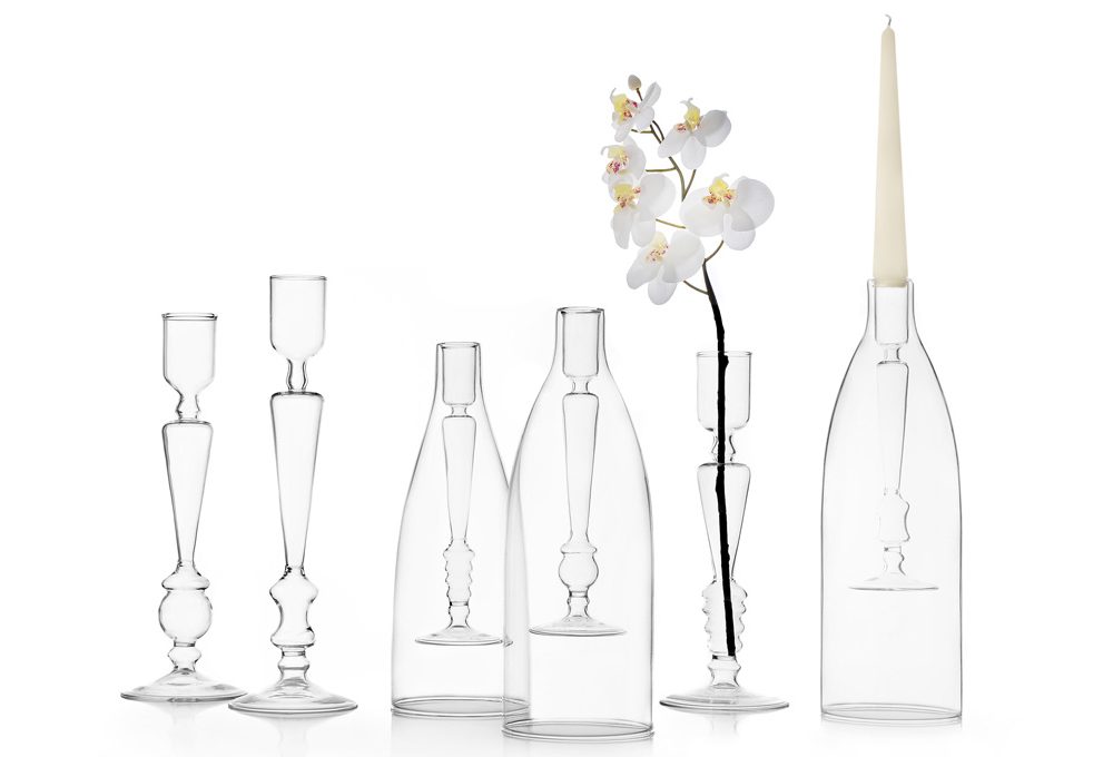Eden, scultoreo in vetro e ottone: versione glam della classica ‘fiala’ [Agustina Bottoni, cm 23x37h € 300].