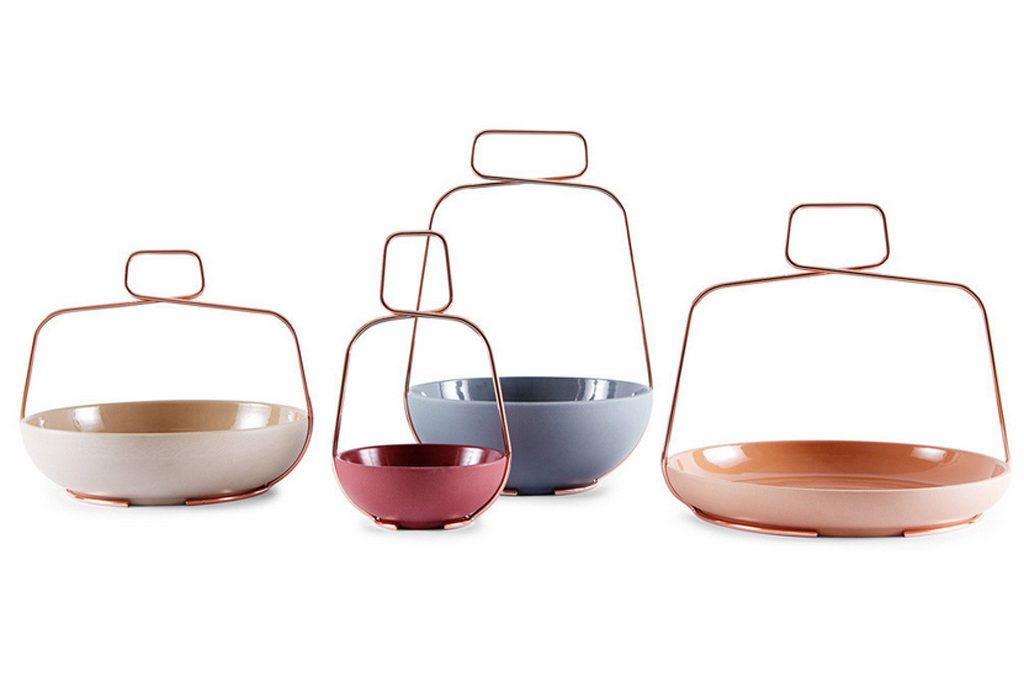 Quattro portafrutta e portadolci impilabili, con il manico in rame [Incipitlab, da € 75]