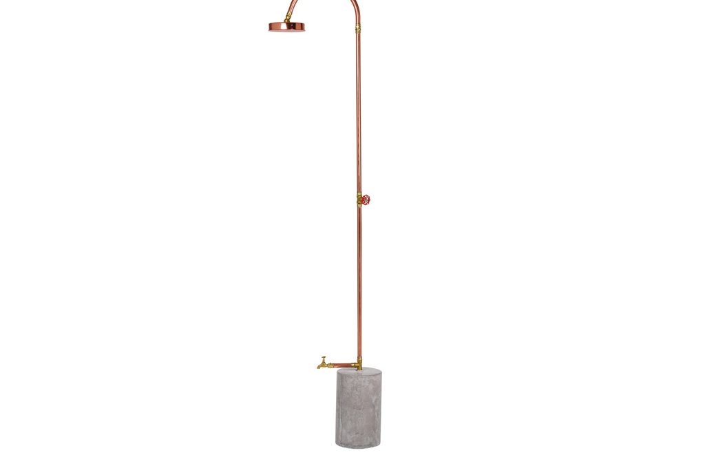 Pensata per l'esterno è una bellissima doccia anche per il bagno, Aquart Lux in rame e cemento [Seletti € 120+€ 63 la base]