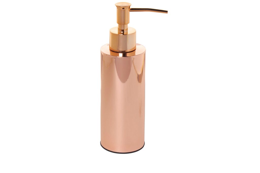 Il rame conquista gli accessori da bagno, come il dispenser per sapone liquido [Coincasa € 19,90]