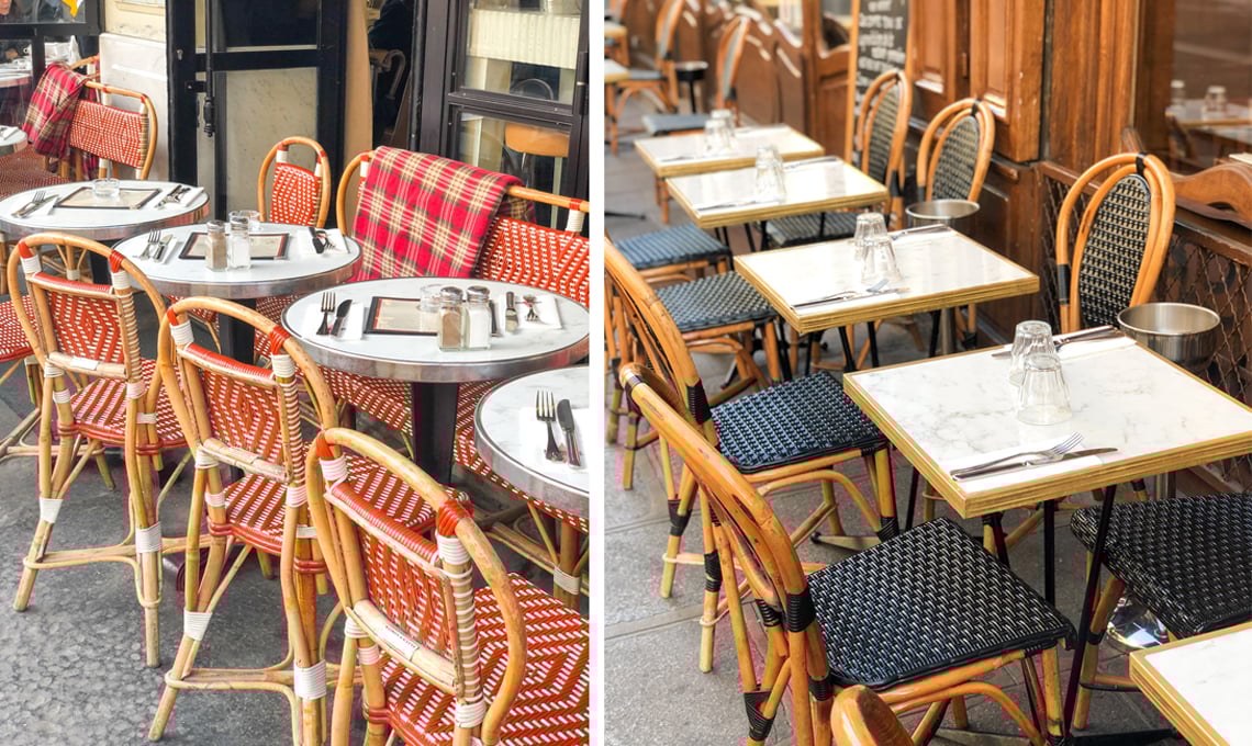 Parigi avrebbe meno fascino senza i suoi bistrot dove i francesi amano rilassarsi mangiando e chiacchierando all’aperto anche in inverno. Le classiche sedie 'da bistrot' in rattan con seduta e schienale intrecciati, sono ormai entrate nell’immaginario parigino comune.