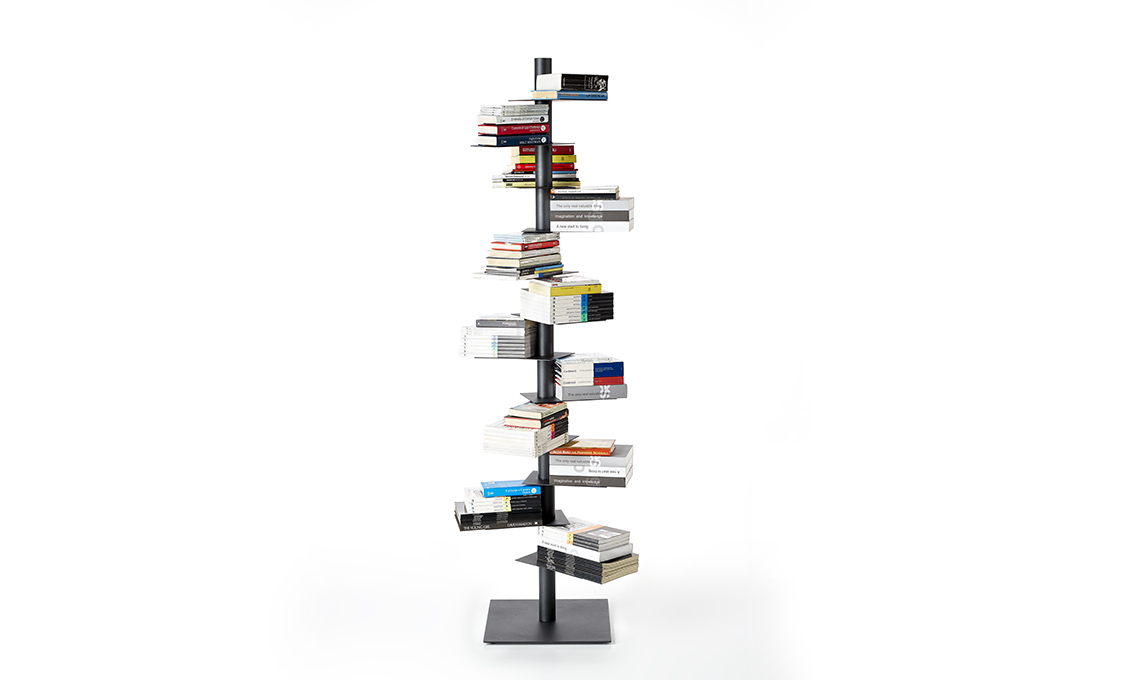 In metallo verniciato, la libreria a totem Sapiens offre una soluzione elegante e pratica per chi possiede molti libri ed ha uno spazio limitato. E’ disponibile nei colori bianco opaco e grigio antracite, alta cm 152 o cm 202.