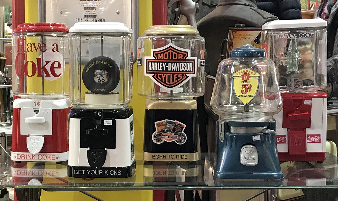 Scritte luminose anni ’50 di famosi marchi di bevande e grossi cartelli in metallo di famose pubblicità, sono perfetti come pezzo unico per dare risalto ad una parete spoglia o sopra al tavolo nella zona pranzo. Insegne con nomi di vecchi bar e locali, calendari in metallo, piccole insegne straniere con claim di vario genere, possono creare una composizione di design vicino alla zona dei fornelli o fra il piano di lavoro e i pensili. Vecchie scatole in latta di biscotti, caramelle o cioccolato, oggetti vintage come frullatori vanno benissimo sul piano di lavoro per abbellirlo; piccole mascotte o giocattoli di altri tempi vanno benissimo sulle mensole della tua cucina insieme ai tuoi piatti preferiti, barattoli o vasi di design dalle linee pulite.