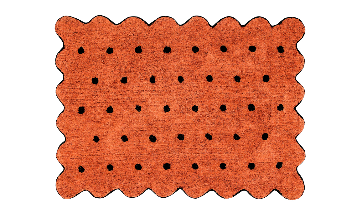 Super soffice il tappeto color terracotta in puro cotone di Lorena Canals [Family Nation, cm 120x160 € 145].