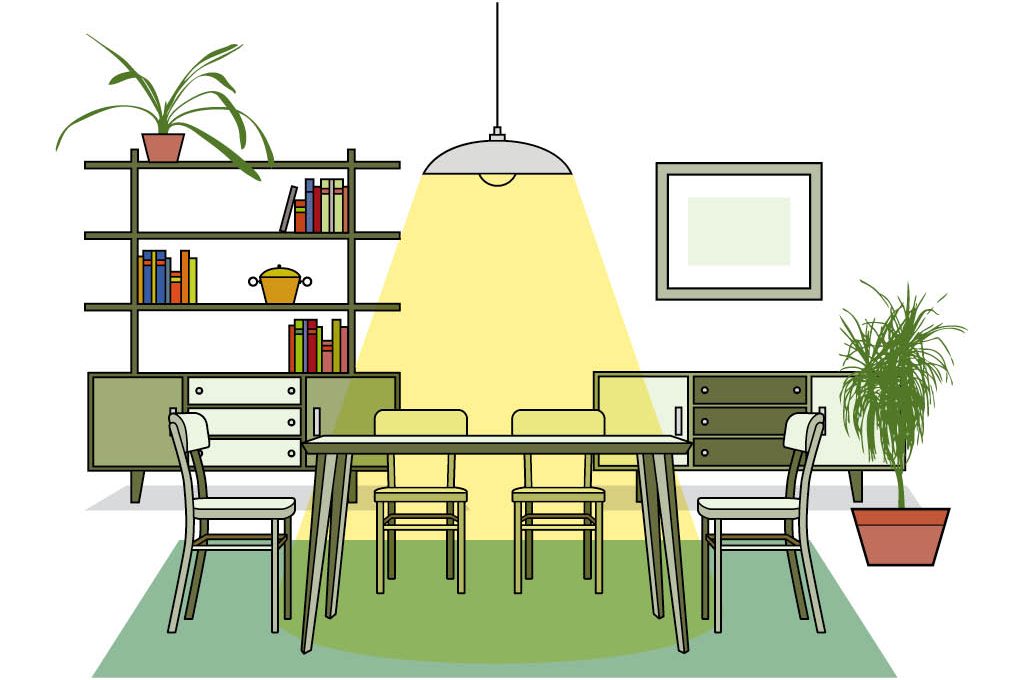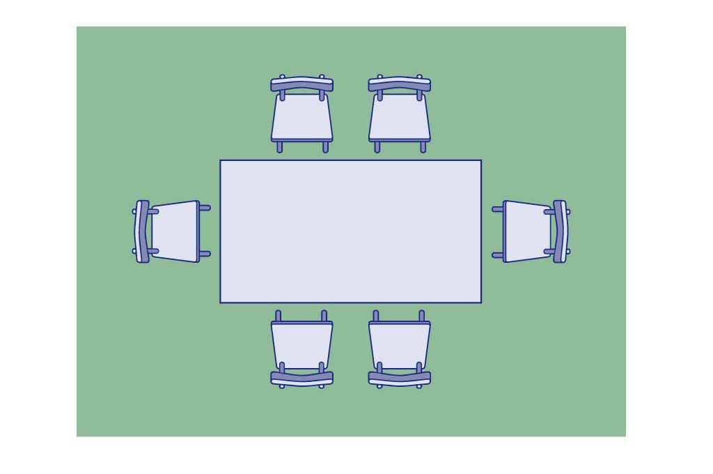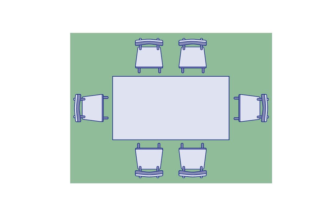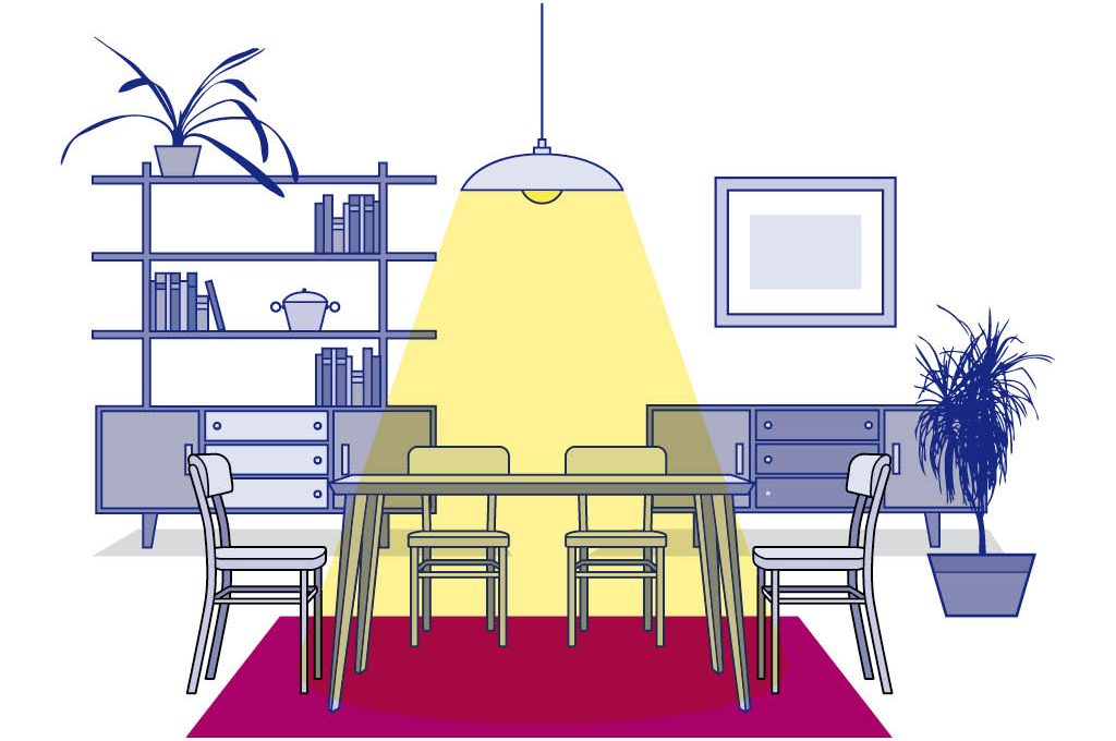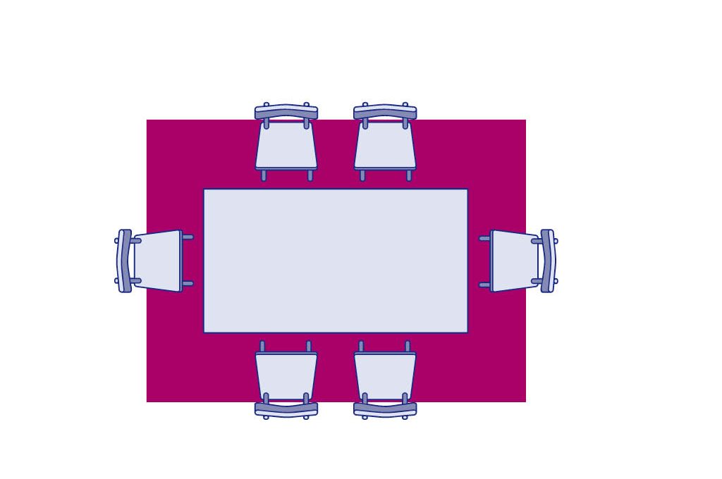 Il tappeto deve essere almeno cm 60 più largo del tavolo, per contenere anche le sedie (in media una sedia è profonda cm 45/50)